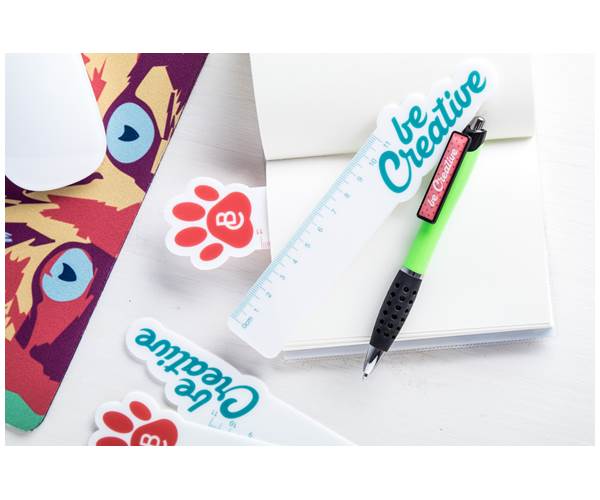Una soluzione su misura, righello di plastica (11 cm), con la parte superiore a forma personalizzata (dimensioni massime: 50×50 mm). Il prezzo include 1 stampa a colori. MOQ: 100 pezzi.Tempo di consegna (giorni)