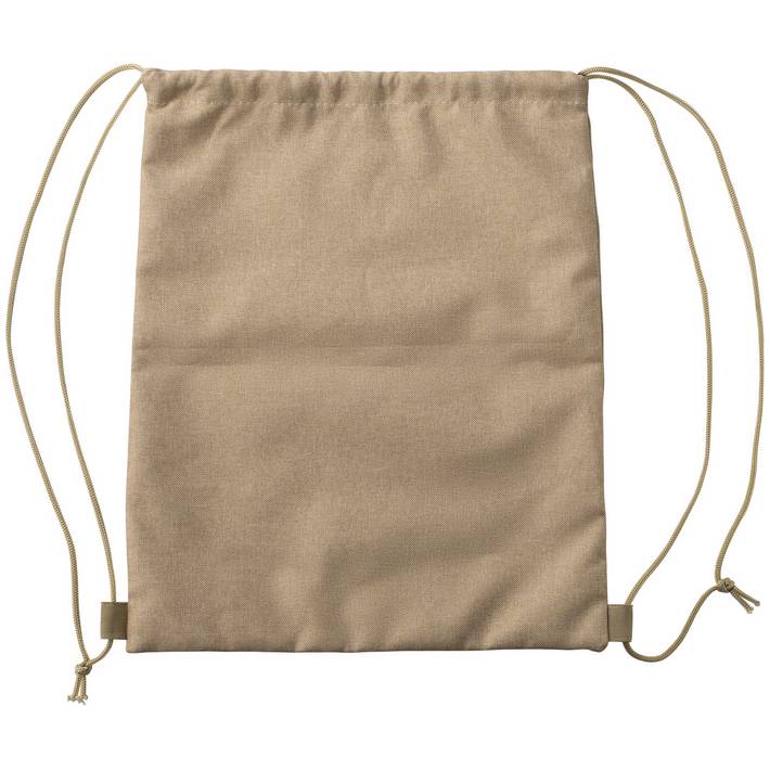 RPET polyester (600D) drawstring bag. Cork bottom and nature colour. Small pocket on front. With RPET label.Minimalna količina:
