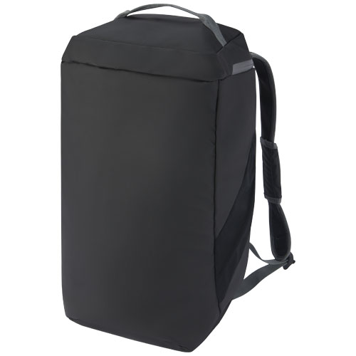 Water-resistant 2-in-1 duffel backpack made from GRS certified recycled materials, including the zips. It features a spacious main compartment with U-shaped opening for easy storage and access, two side zipped pockets (including a compartment for shoes), one zipped front pocket, a mesh water pocket on the back, and reflective piping for visibility. This bag can be carried in 3 different ways: By hand, over the shoulder, or as a backpack with its padded and adjustable shoulder straps. The GRS recycled materials include the main fabric, lining, webbing, and zips. Capacity: 35 litres. PVC free.Minimalna količina: