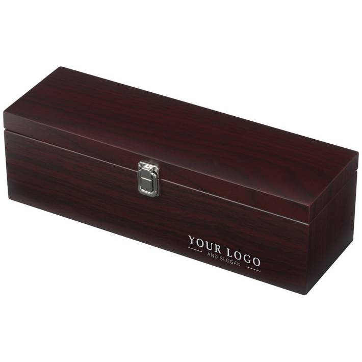 Vinski set v leseni škatli z natakarskim nožem, termometrom, obročkom, zamaškom in pripomočkom za točenje.Minimalna količina:
