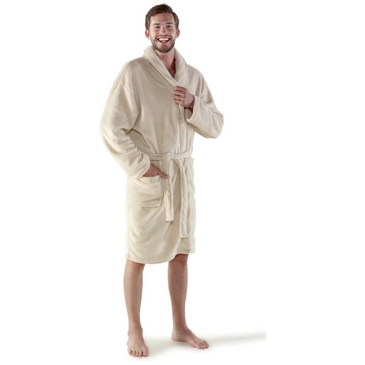 Fleece bathrobe with two sewn-on front pockets. Includes a belt loop in matching material of 178 x 4 cm.Minimalna količina: