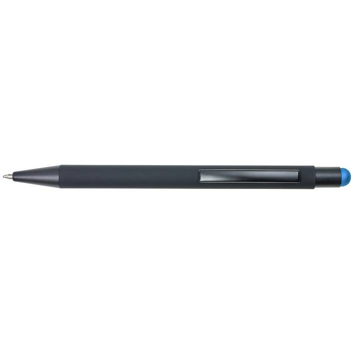 Aluminium and ABS ballpen with rubber coating and rubber tip for capacitive screens. When the pen is lasered, the imprint will show in colour. Blue ink.Minimalna količina: