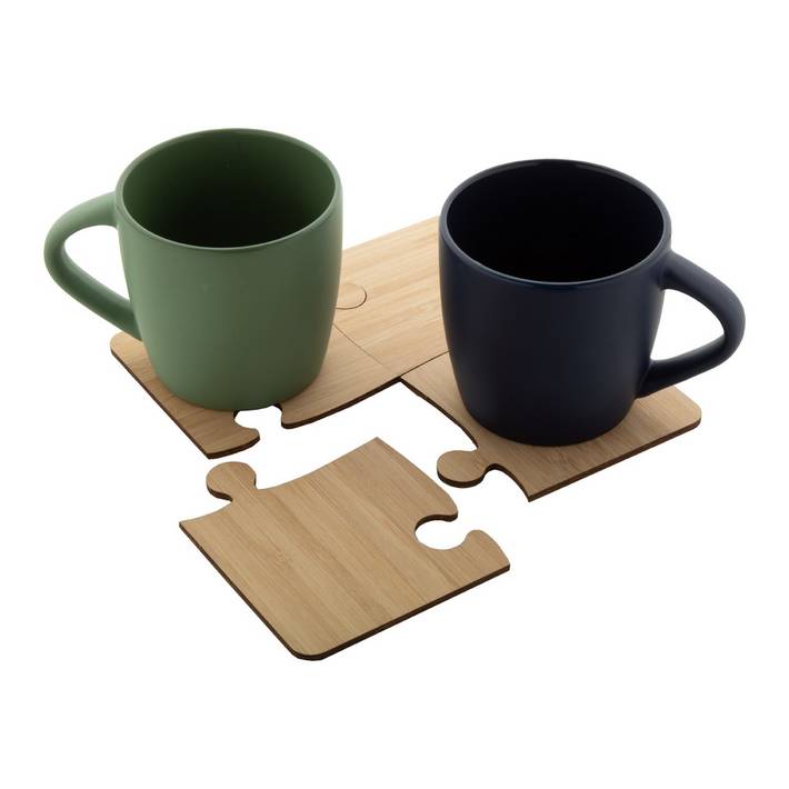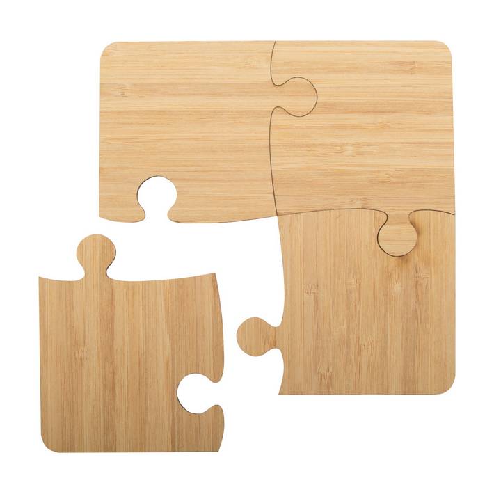 4 pc puzzle shaped bamboo coaster set.