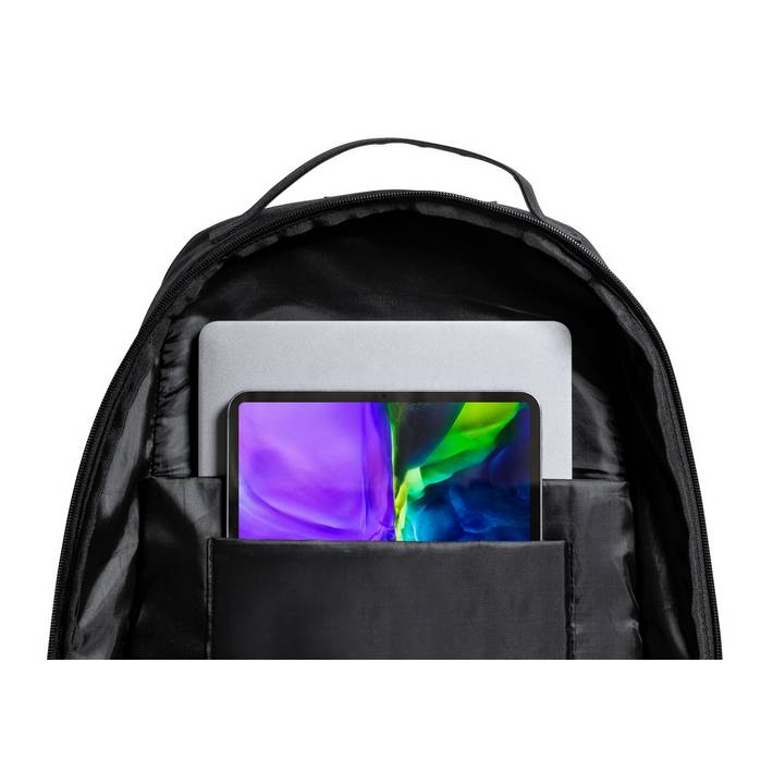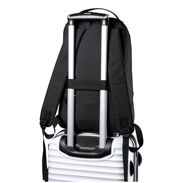 Waterproof RPET backpack with zipped compartments, padded laptop (15") and tablet (10") compartment, trolley strap, hidden anti-theft pocket, ergonomic back and shoulder straps. 600D RPET polyester with distinctive RPET label.Minimalna količina: