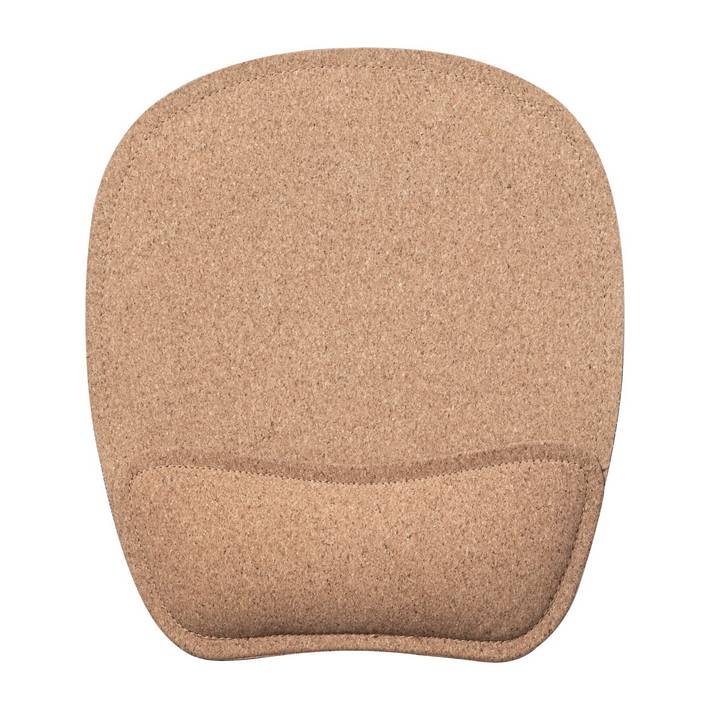 Natural cork mouse pad with ergonomic wrist rest and silicone base.