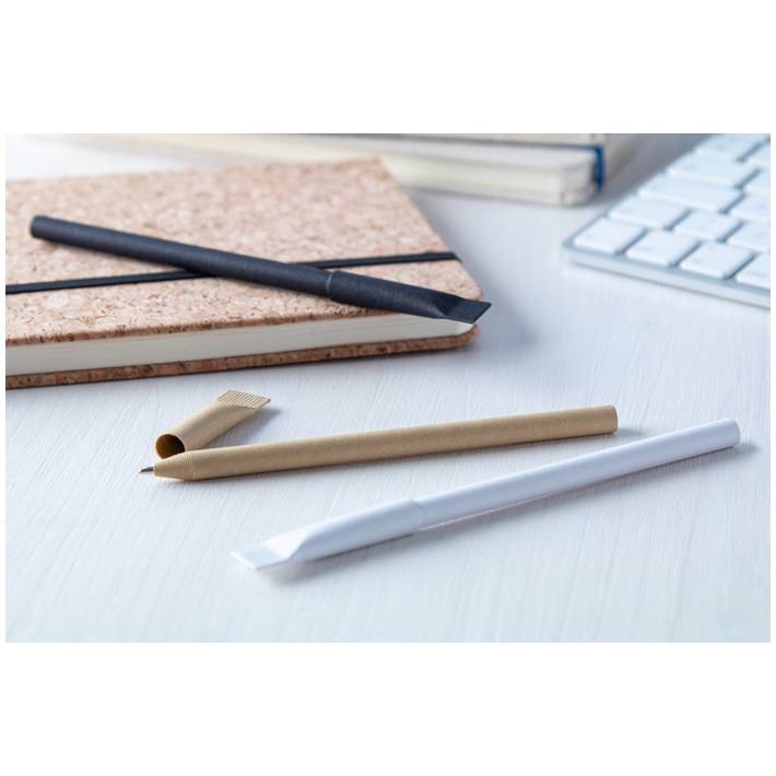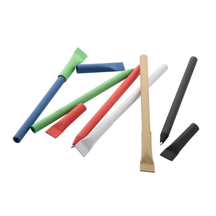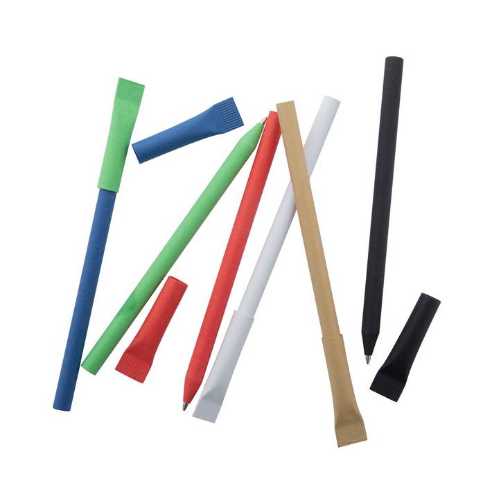 Recycled paper ballpoint pen with matching colour cap and blue refill.