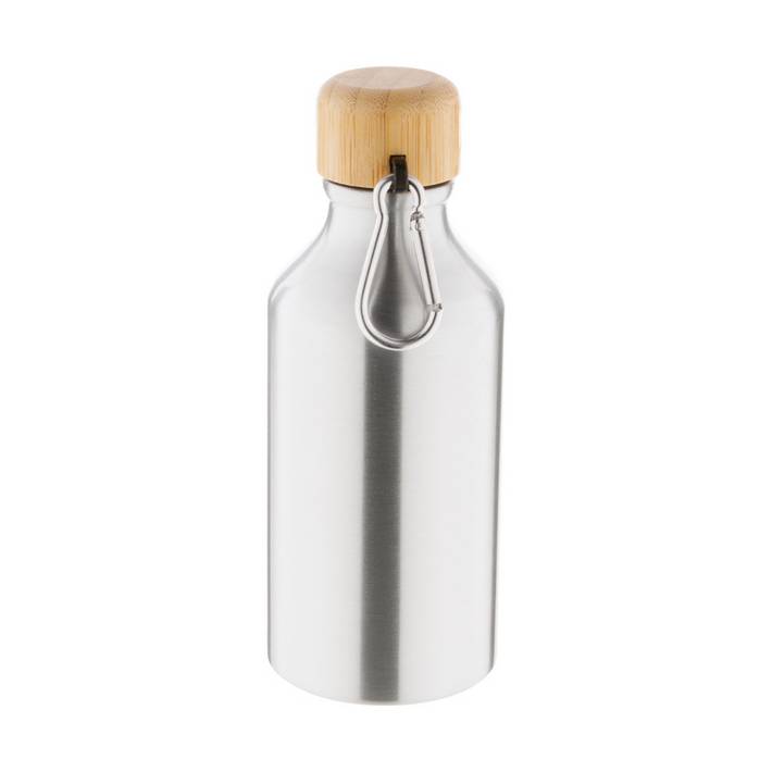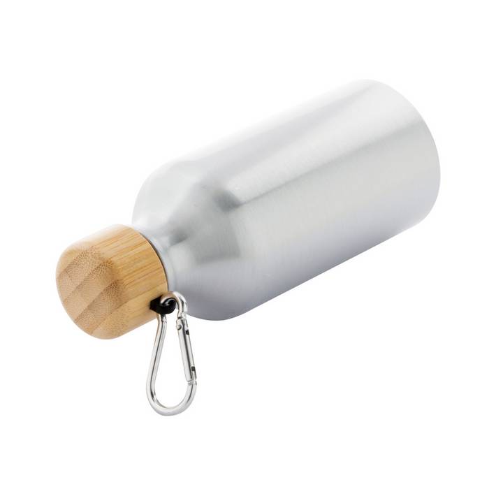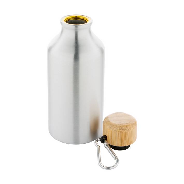 Aluminium sport bottle with bamboo lid and carabiner, 400 ml.