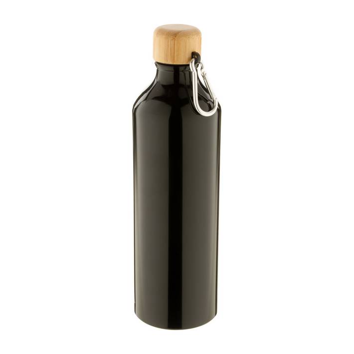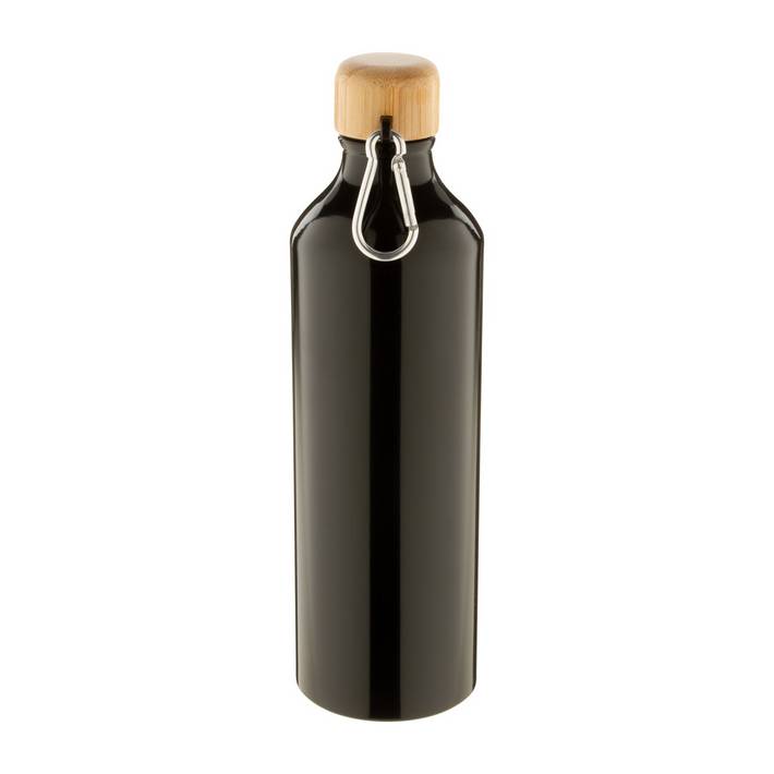 Aluminium sport bottle with bamboo lid and carabiner, 800 ml.