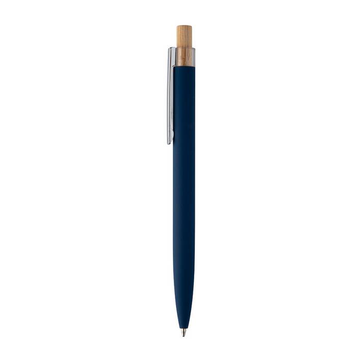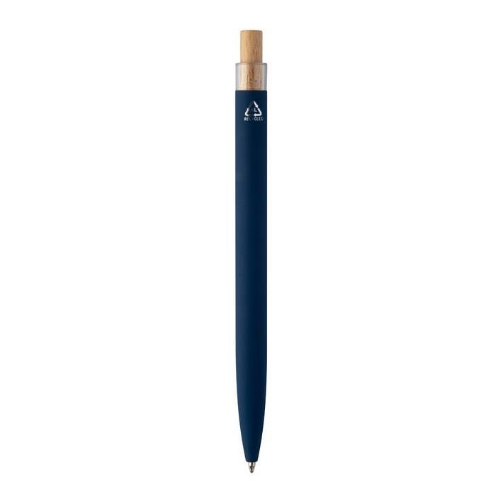 Recycled aluminium ballpoint pen with rubberized finish, bamboo button and chrome clip. With special coating for mirror laser engraving. With blue refill.Minimalna količina: