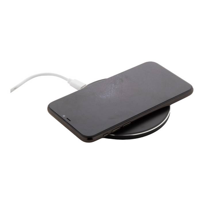 Recycled aluminium wireless fast charger (15W). Including USB charger cable.