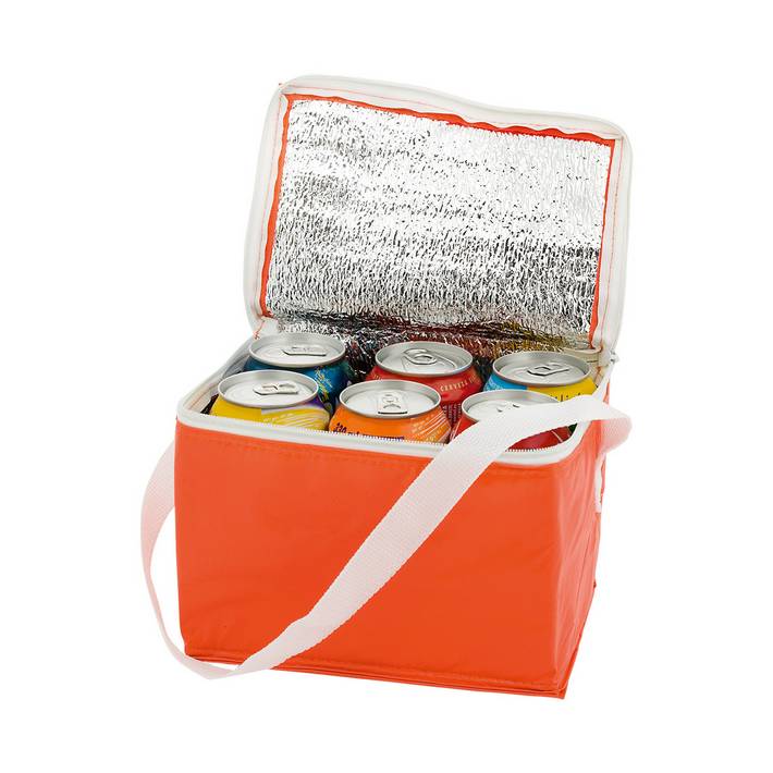 Zipped cooler bag with aluminium padding for 6 pcs 0,33 l cans. Material: PVC.