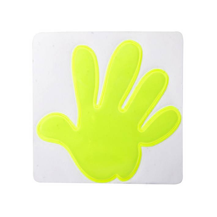 Reflective sticker with hand shape.